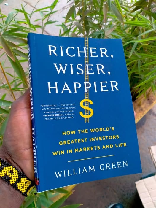 When I first saw the title Richer, Wiser, Happier, I nearly dismissed it. It sounded like one of those “get-rich-quick” manuals that mistake slogans for wisdom. But after reading about it in David Alade’s newsletter, I decided to give it a chance. I’m glad I did. Published in 2021, this 300-page book by journalist William Green is less of a manual for wealth accumulation and more of an exploration of the quiet intelligence that underpins lasting success.